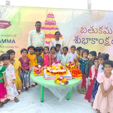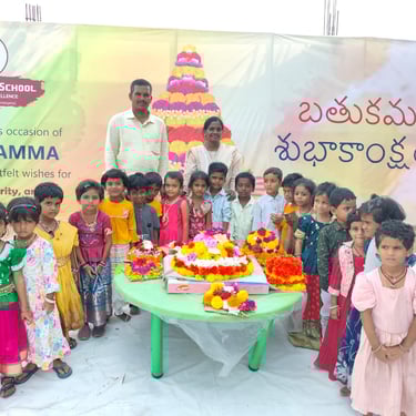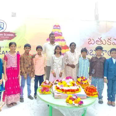 Our school celebrates Bathukamma with joy and devotion, where vibrant flowers come alive in harmony, nurturing tradition, togetherness, and the spirit of culture under the graceful guidance of our community.